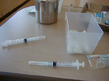 訓練用の注射器と生理食塩水